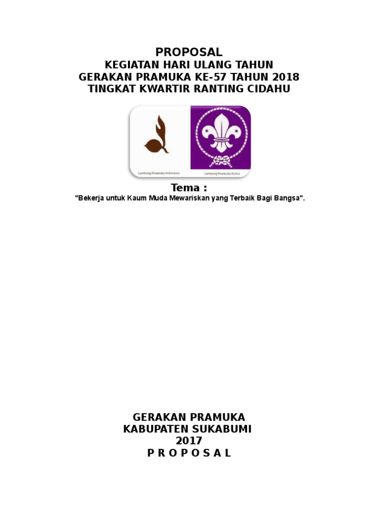 By almuntasir lidinillah, s.pd.i 09 sep, 2018. Untuk membantu dalam pembuatan proposal bantuan danadeskripsi lengkap. Dalam pengajuan kegiatan perkemahan untuk golongan pramuka penegak maupun pramuka pandega. Gerakan pramuka sebagai wadah pembinaan yang mempunyai tugas pokok untuk mengembangkan potensi sumber daya generasi. Contoh proposal kegiatan pramuka, berikut ni adalah berbagai contoh proposal kegiatan contoh proposal kegiatan pramuka ke 1.